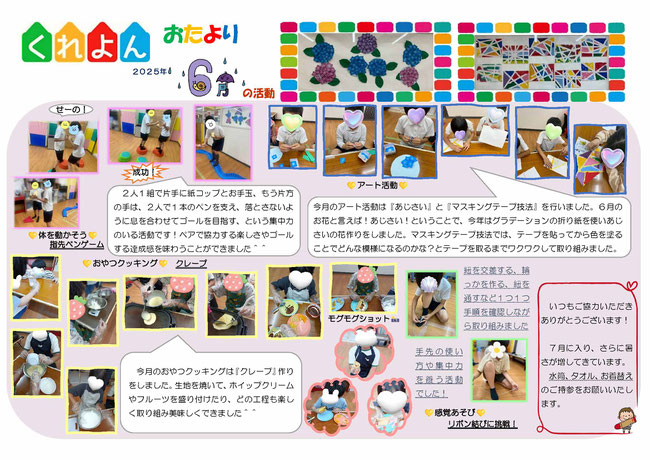 ●くれよんだより(松ヶ枝)6月号です。こちらをご覧ください。